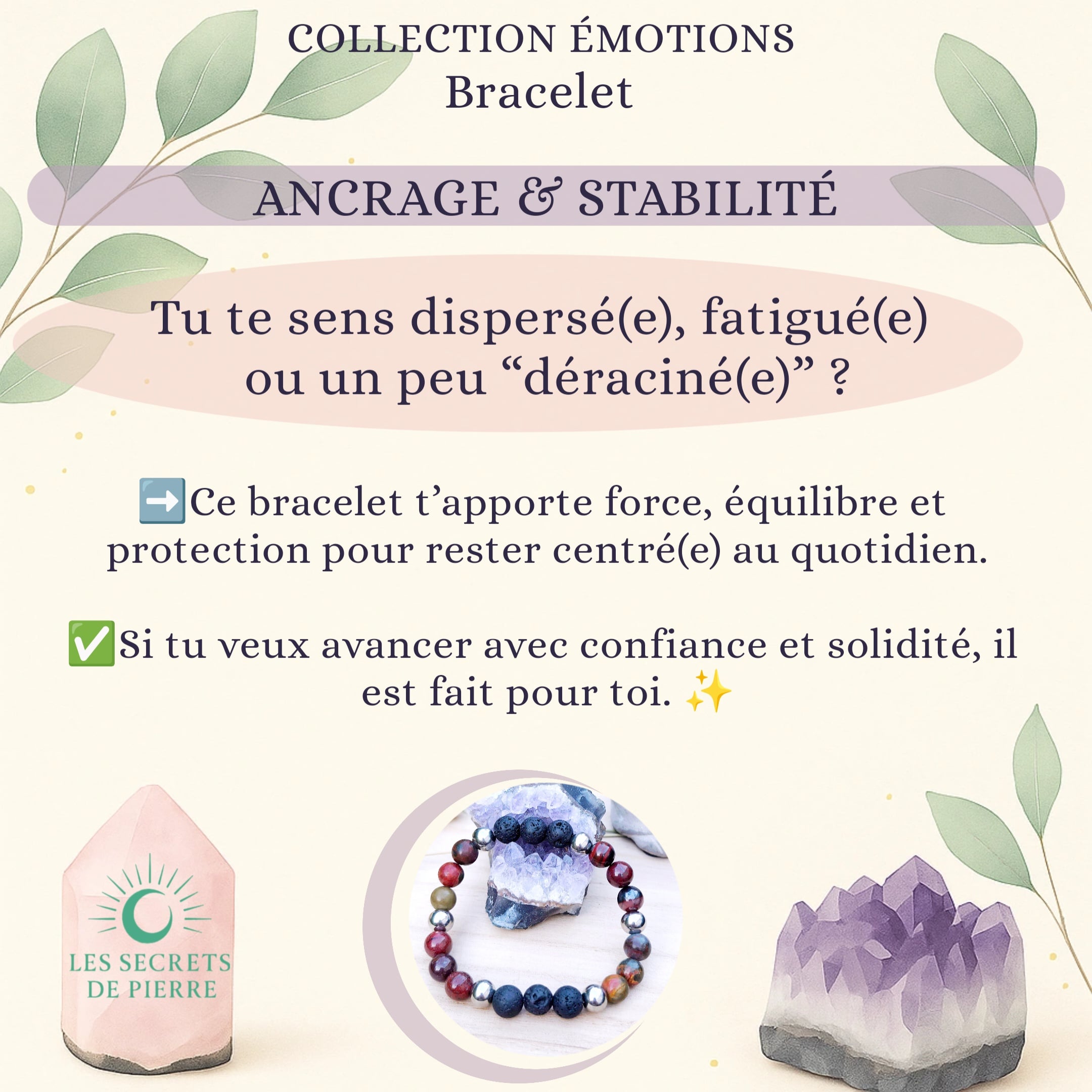 Soyez le premier à laisser votre avis sur “« Ancrage & Stabilité » – Jaspe polychrome, Pierre de lave & Œil de fer”