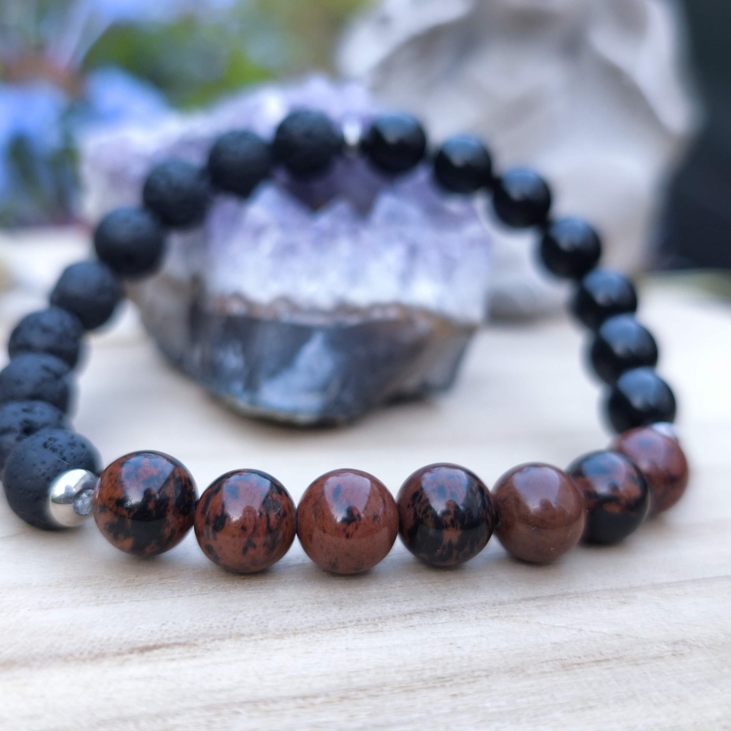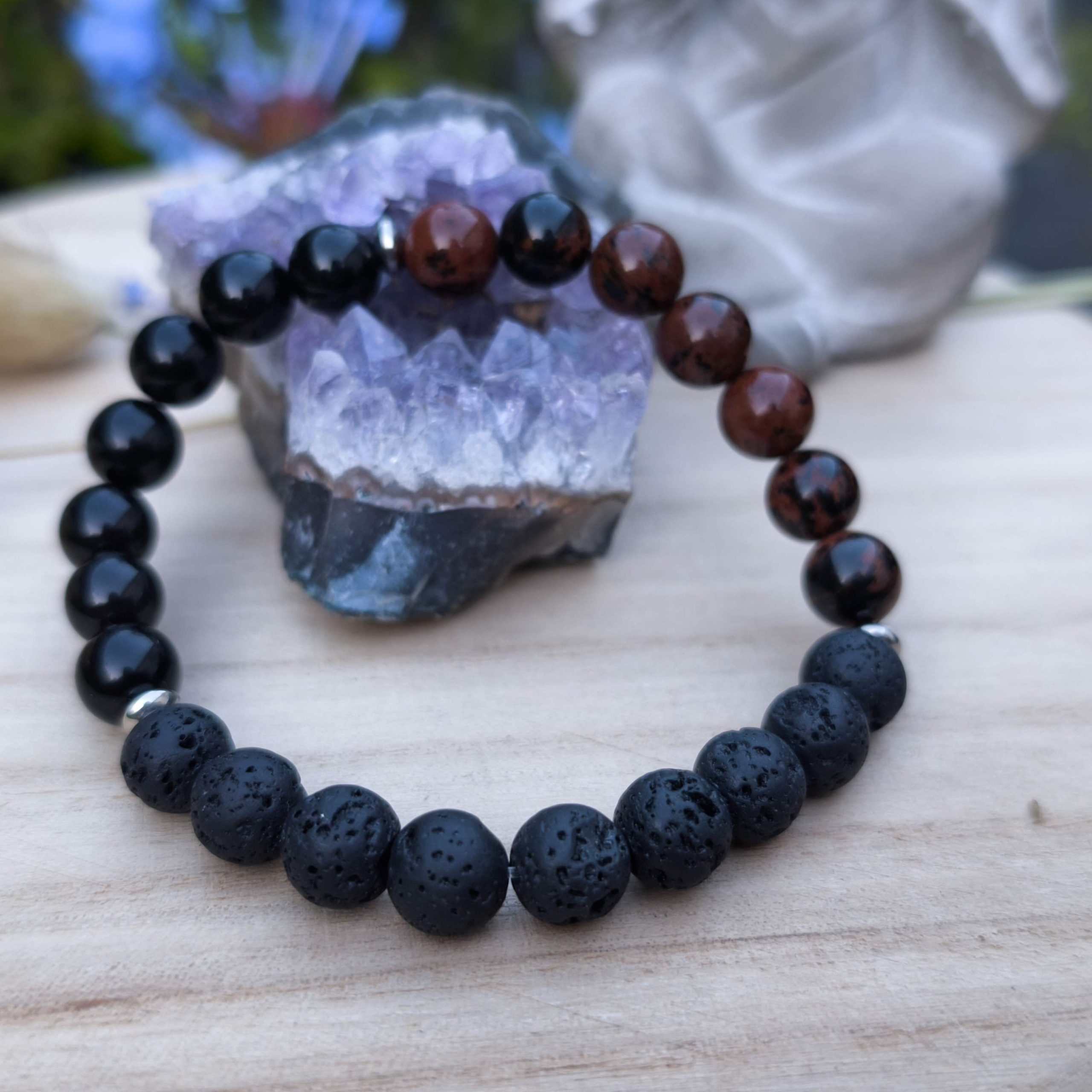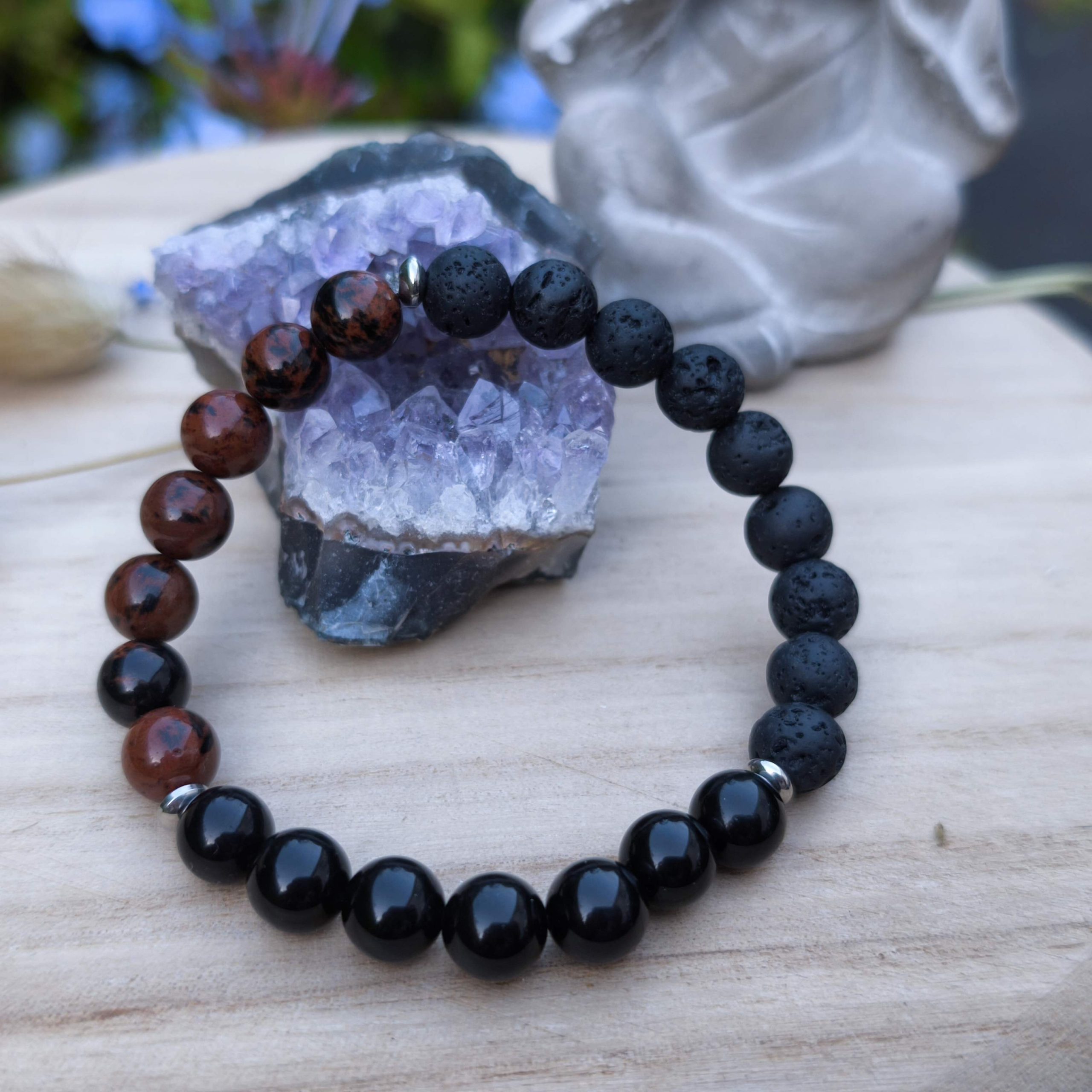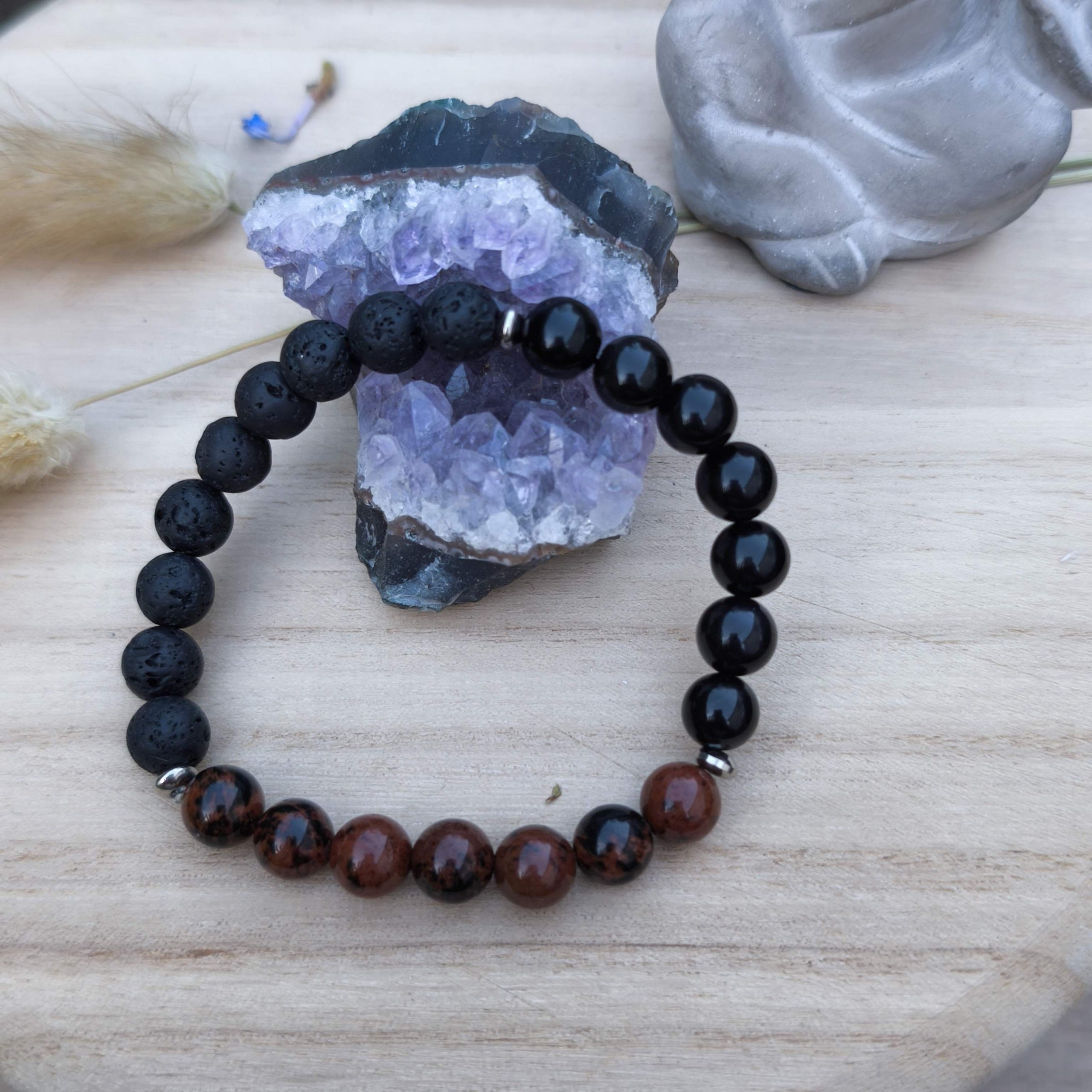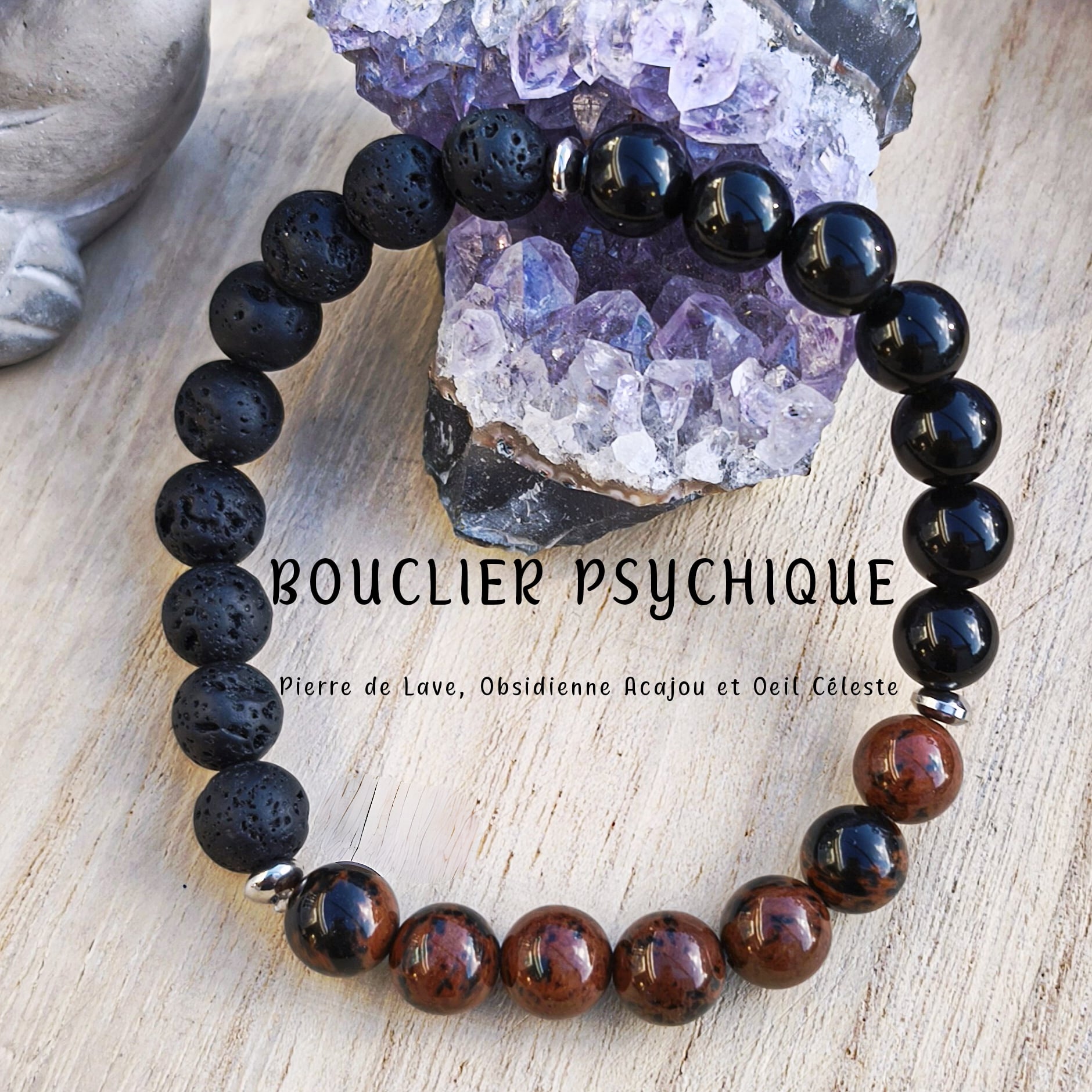 « Bouclier psychique » – Obsidienne Œil céleste, Obsidienne Acajou & Pierre de Lave