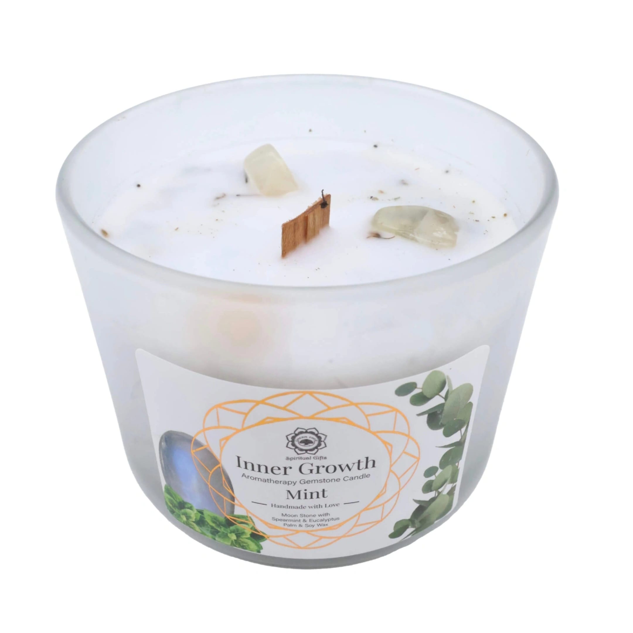 La flamme s’élève doucement, diffusant la fraîcheur de la menthe et l’énergie douce de la pierre de lune. Une atmosphère claire et inspirante s’installe, propice à la croissance personnelle et à l’éveil intérieur.
