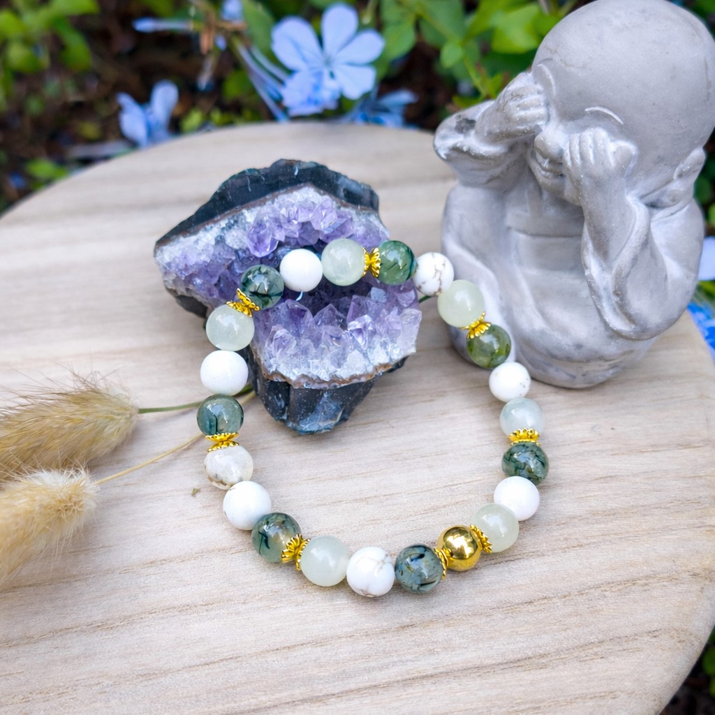 Le new jade (serpentine) stabilise les émotions et encourage la patience.
