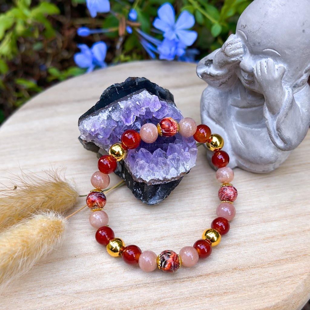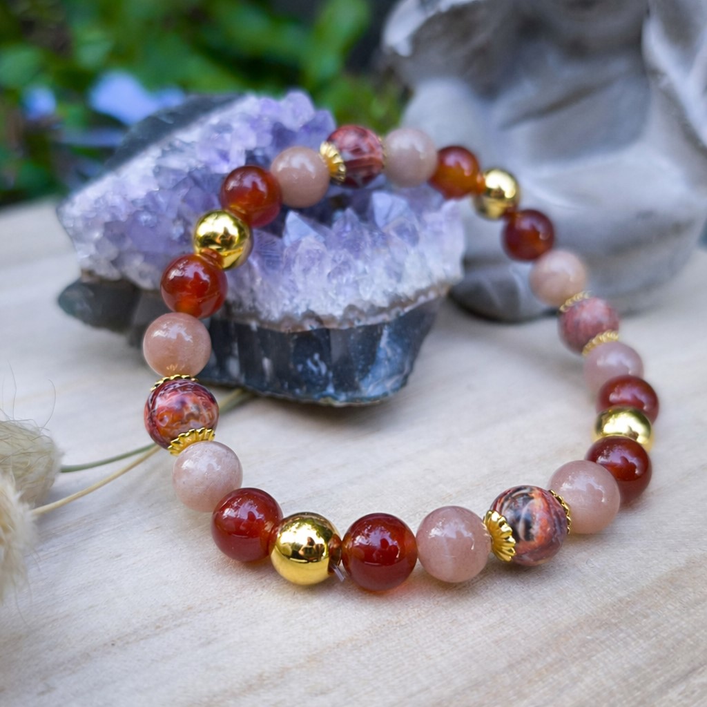 Ce bracelet associe plusieurs pierres naturelles reconnues pour stimuler l’énergie créative.