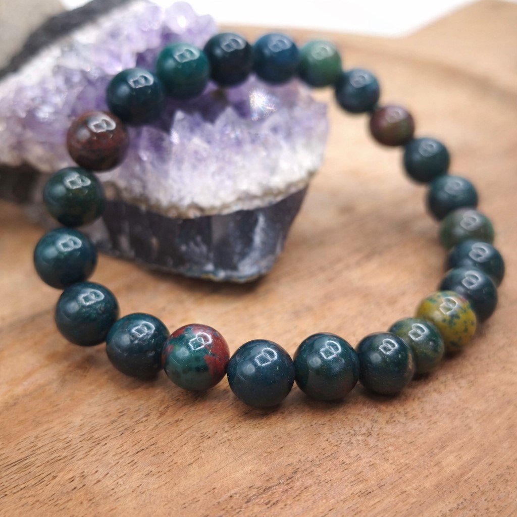 Le jaspe héliotrope, aussi appelé bloodstone, est une pierre de courage et de vitalité.