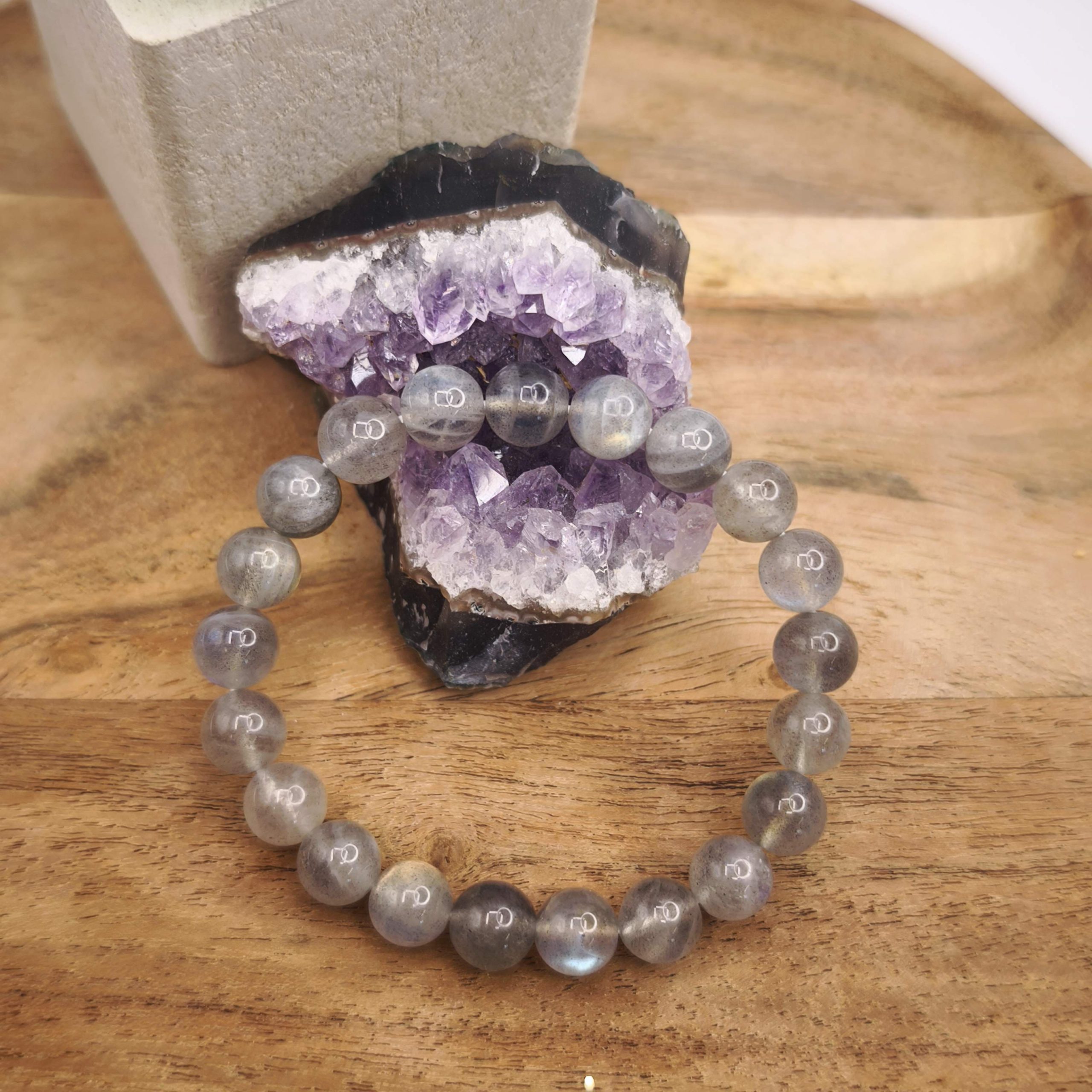 Le bracelet labradorite agit comme un bouclier lumineux qui absorbe les énergies négatives et les transforme en force intérieure.