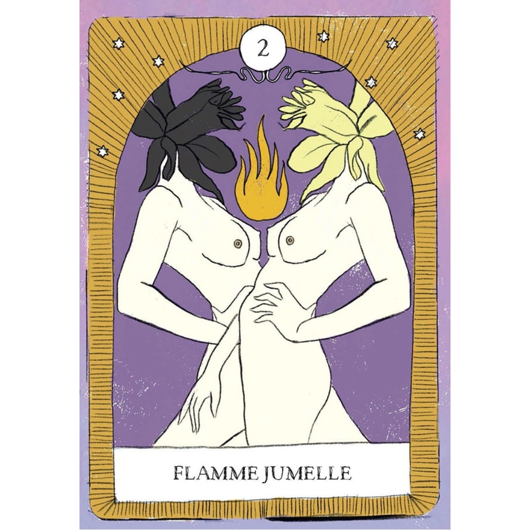 L’Oracle des Flammes Jumelles et Autres Relations Karmiques d’Isabelle Cerf, illustré par Natacha Birds, t’invite à plonger dans la profondeur des liens d’âme.