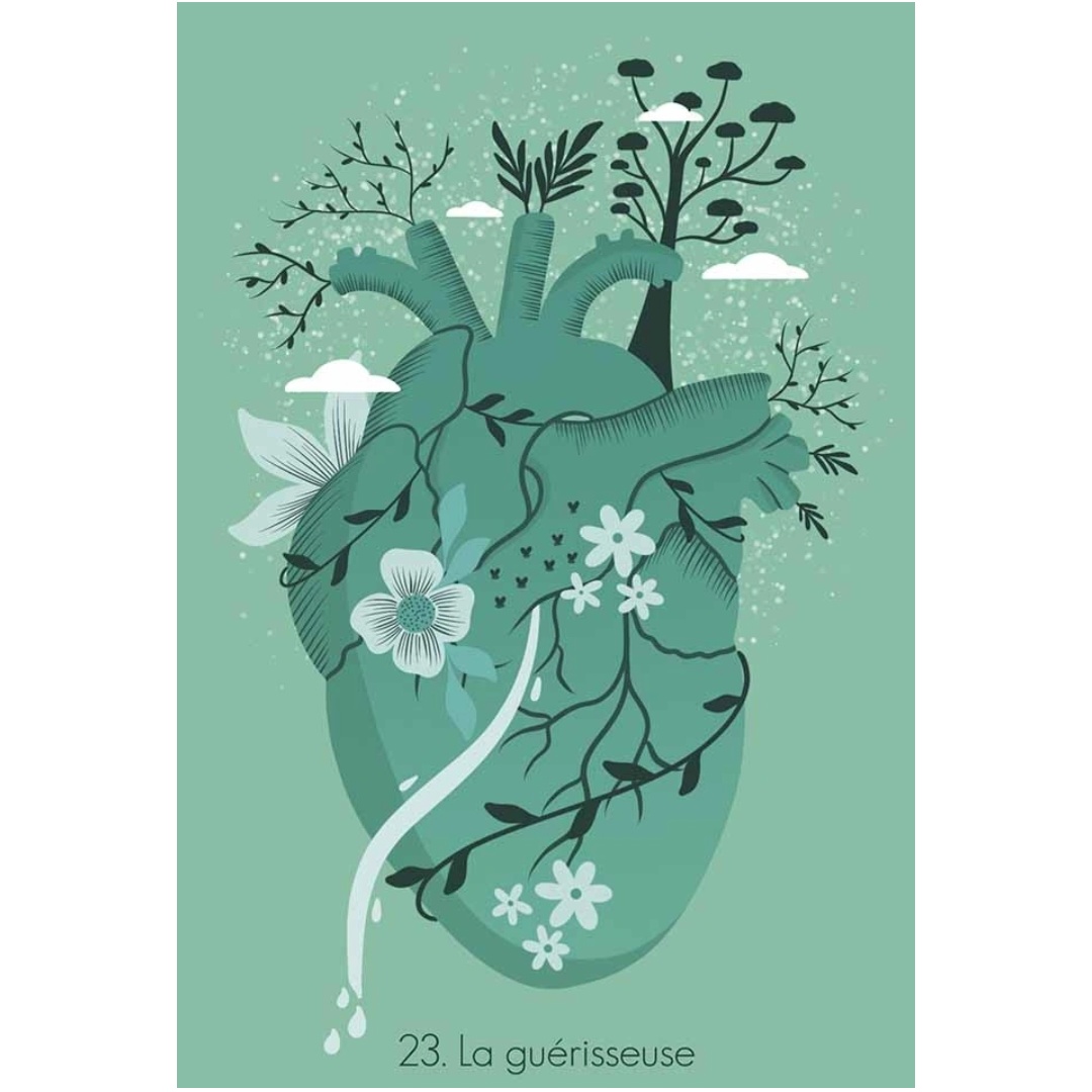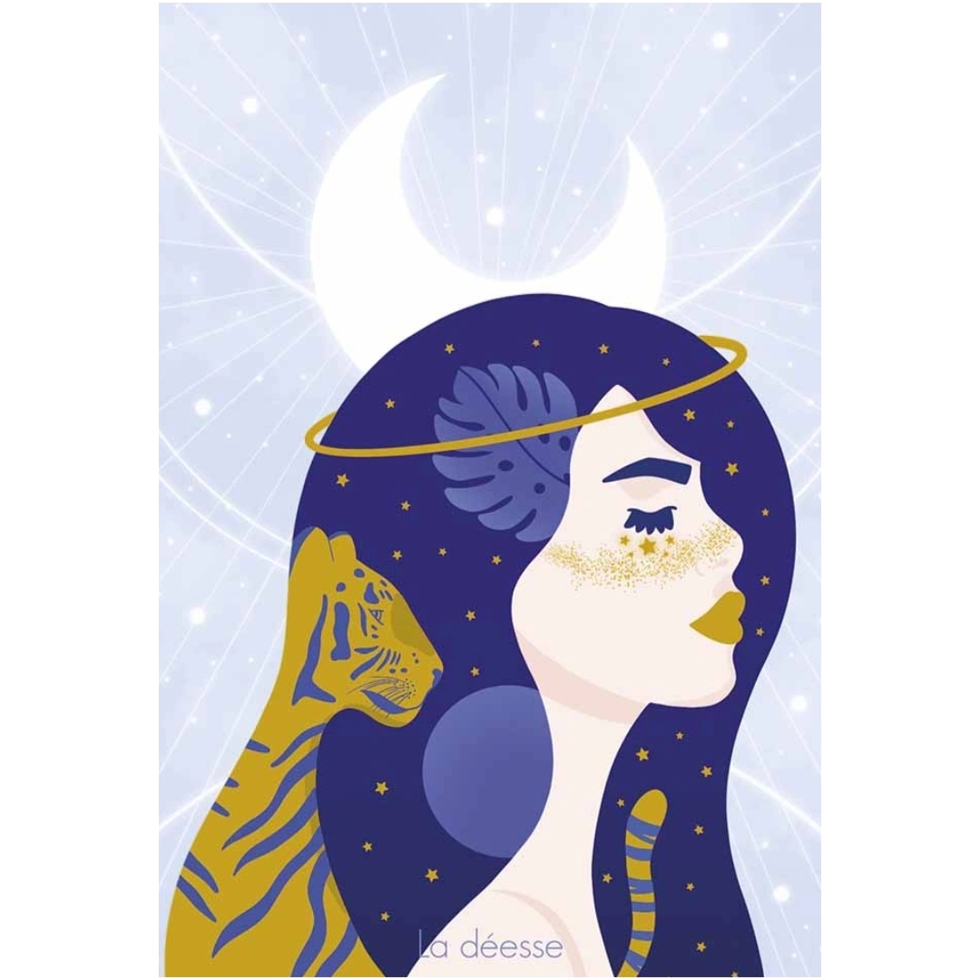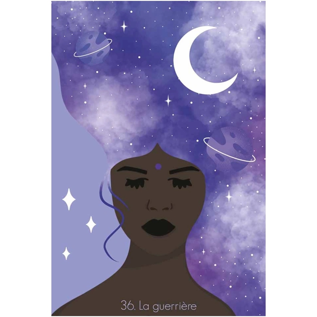Les cartes sont réparties en 7 familles représentant les archétypes féminins : l’Amazone, la Matriarche, la Mystique, la Femme Sensuelle et bien d’autres.