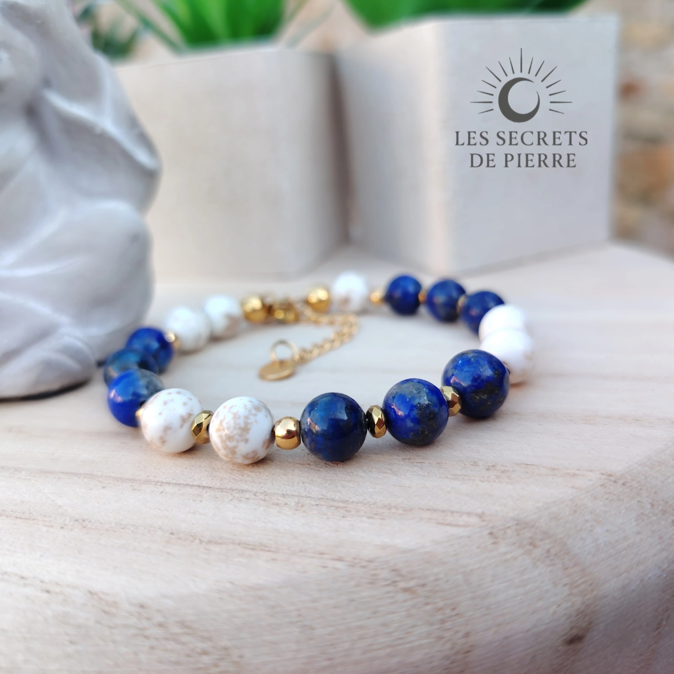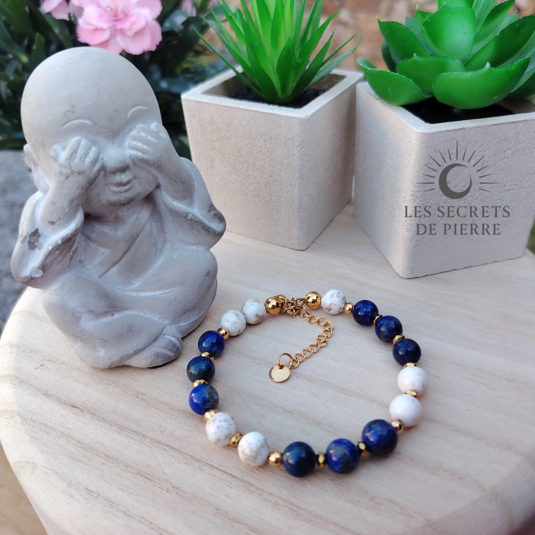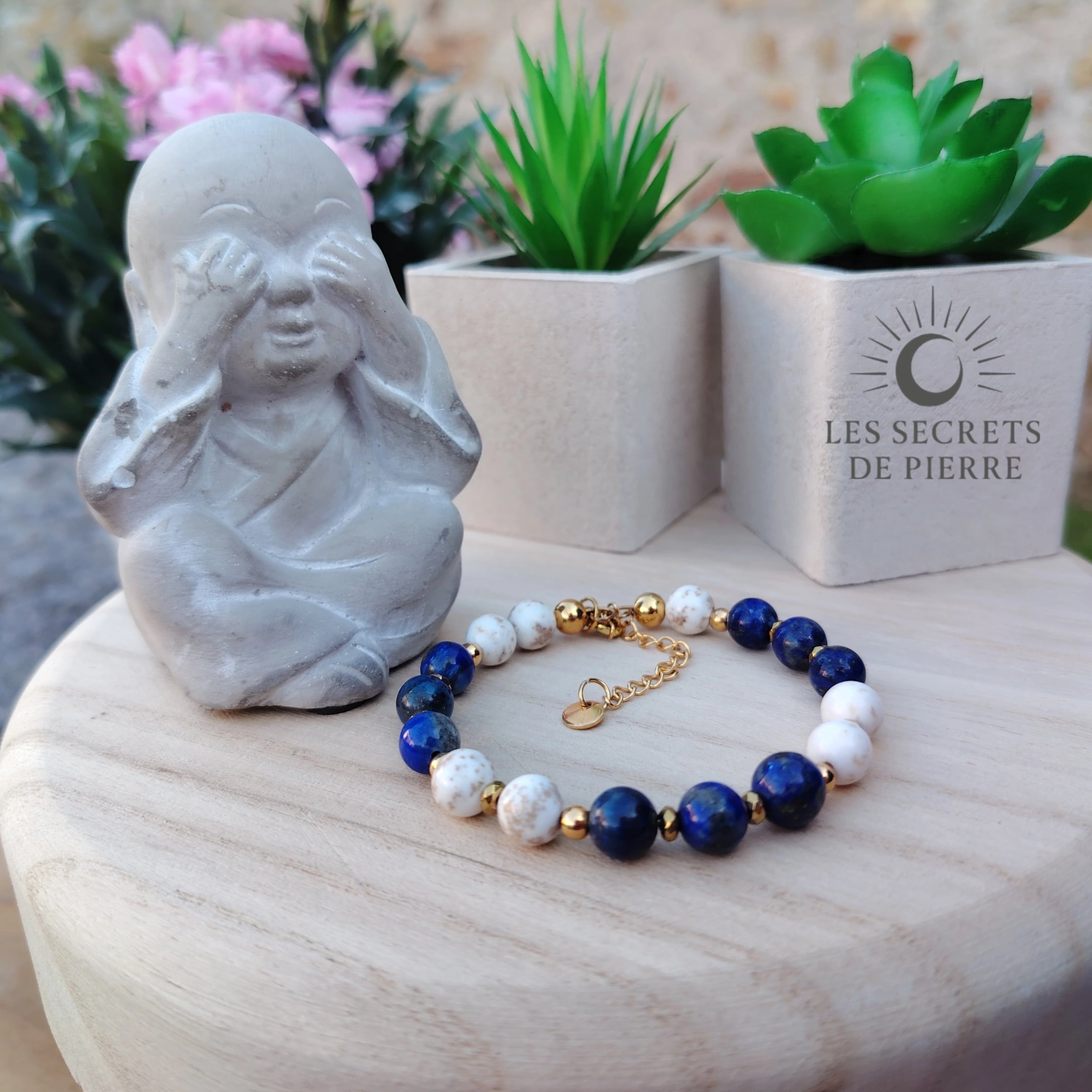 Bracelet Paix de l’Esprit en lapis-lazuli et magnésite« Paix de l’Esprit » – Lapis-lazuli & Magnésite