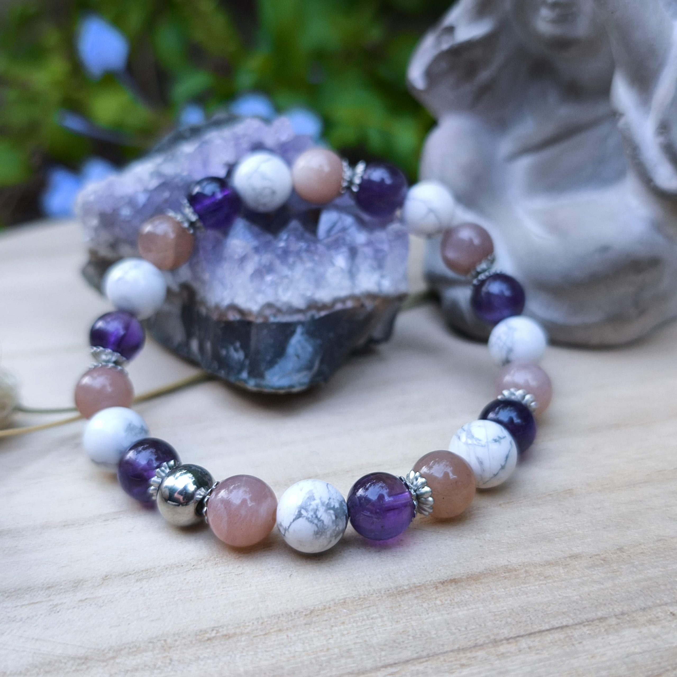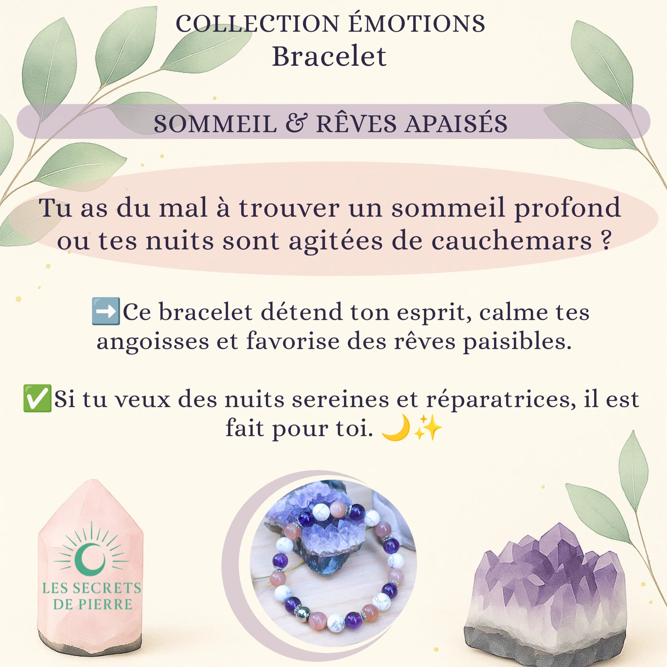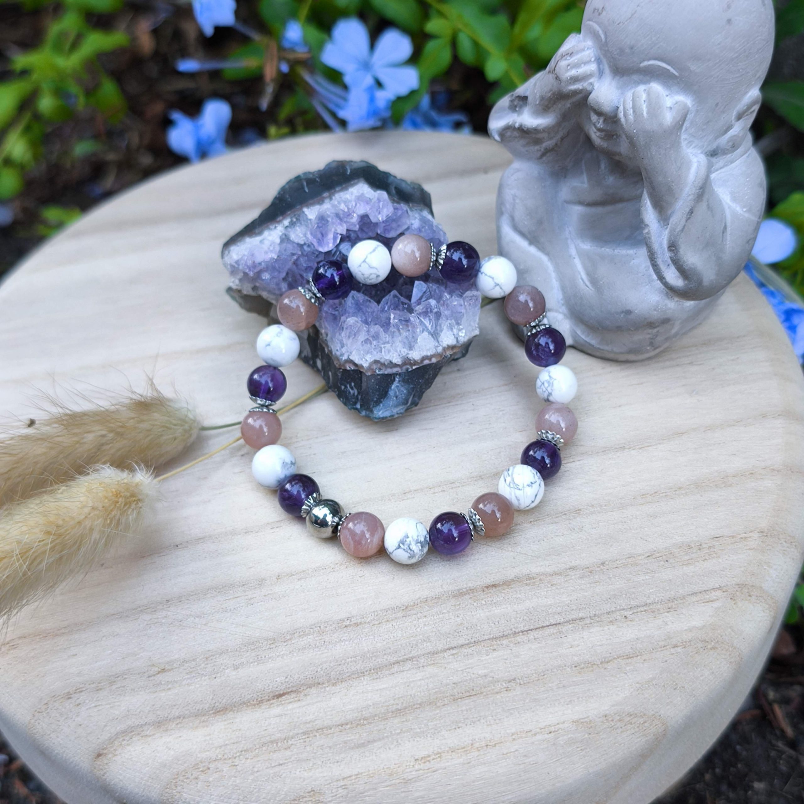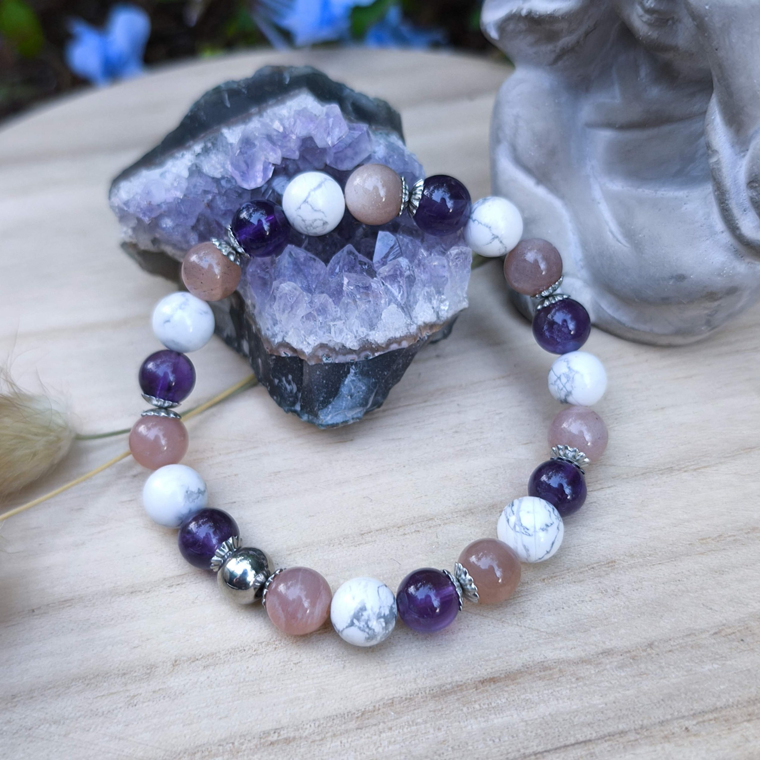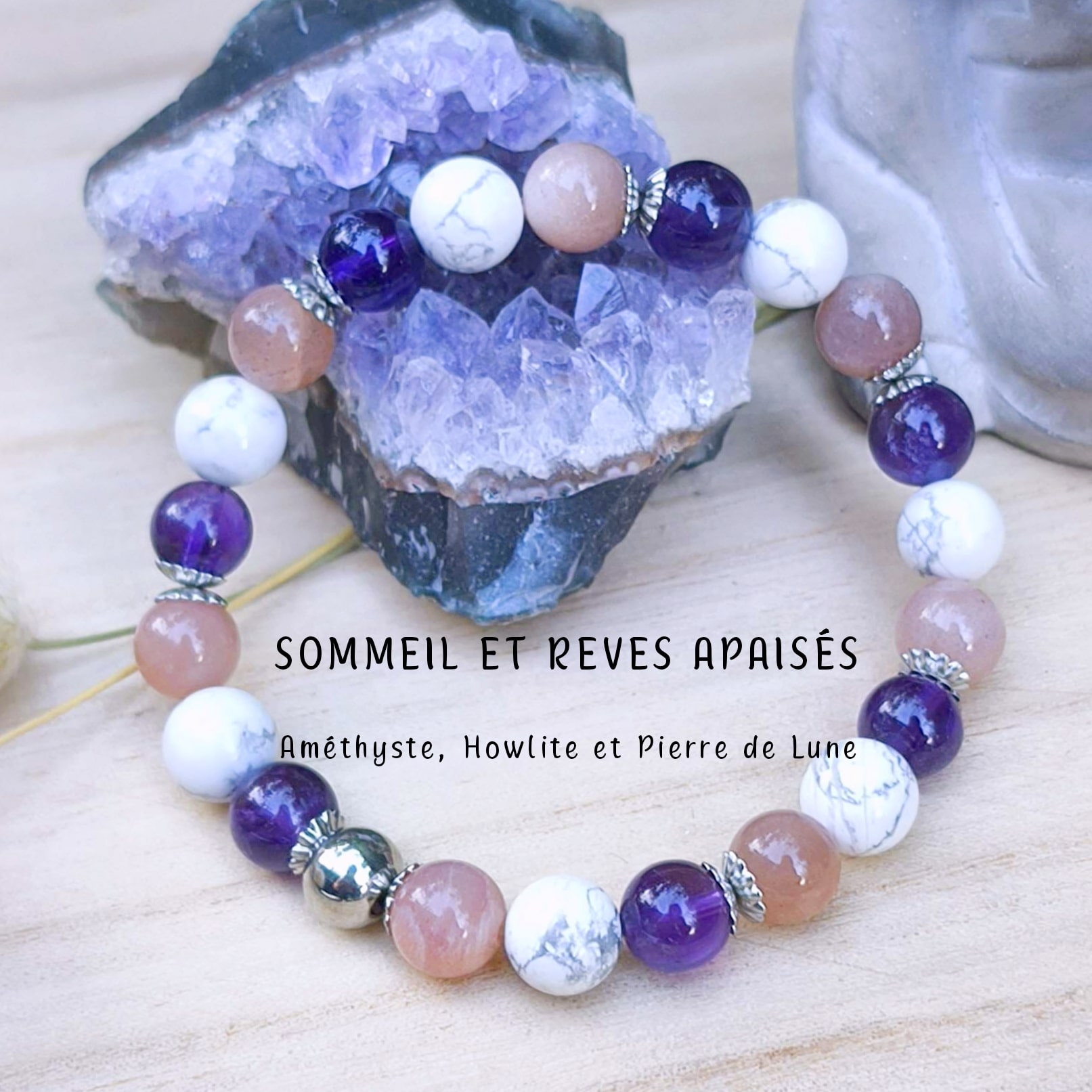 « Sommeil & Rêves apaisés » – Howlite, Améthyste & Pierre de Lune